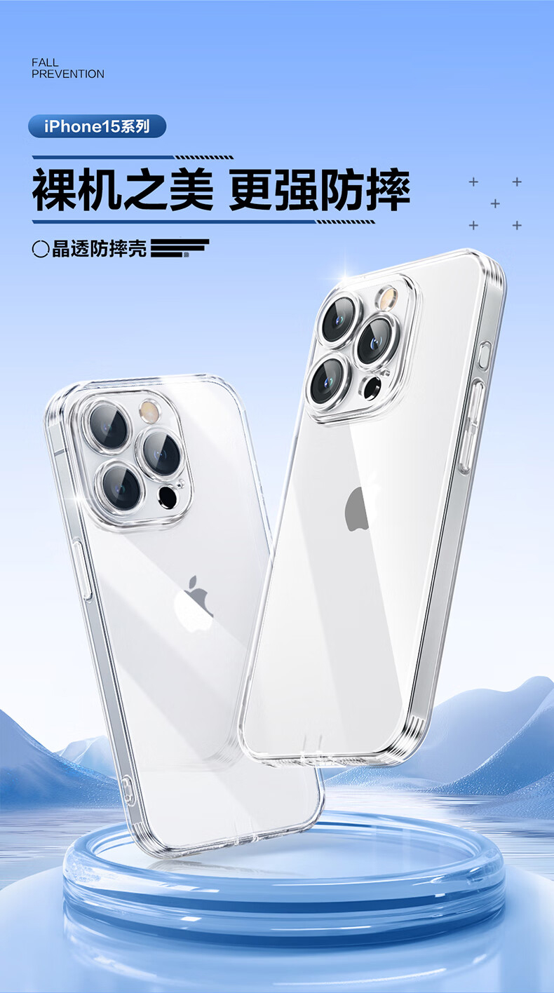 手机保护壳 > iPhone15系列晶透防摔壳 气囊防摔 精孔防尘