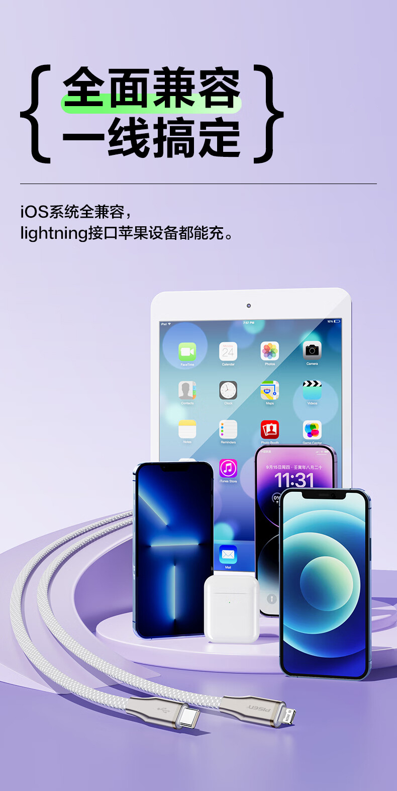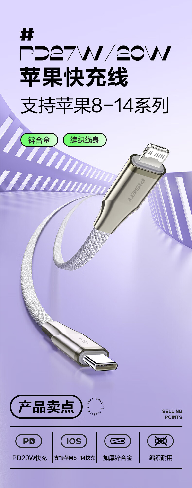 > 苹果锌合金PD线 扁线设计不易缠绕