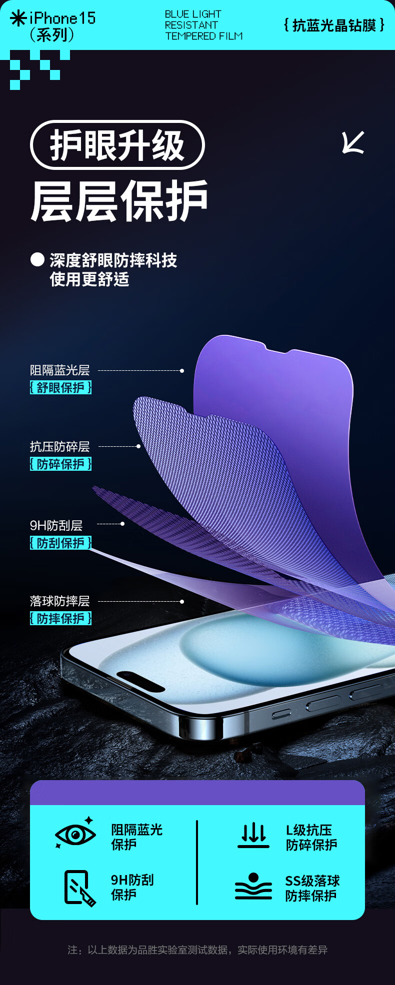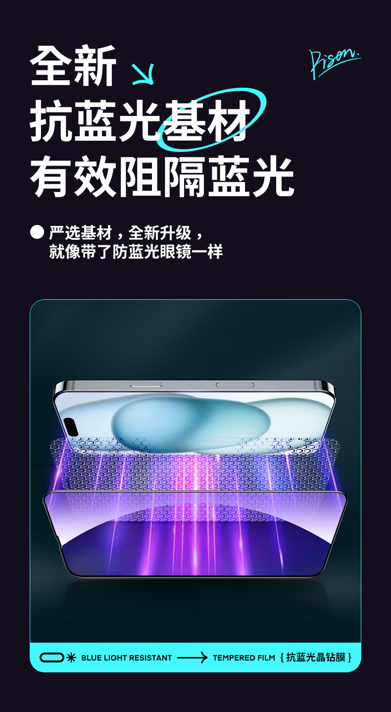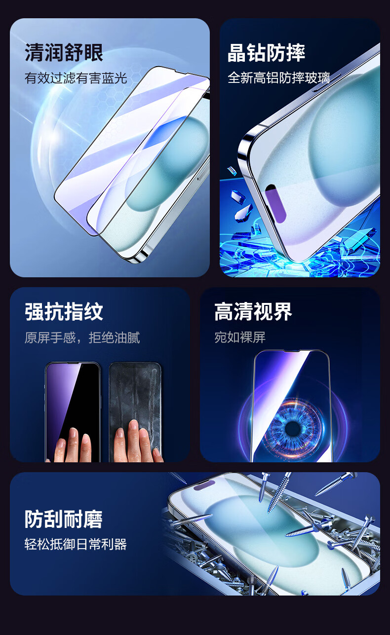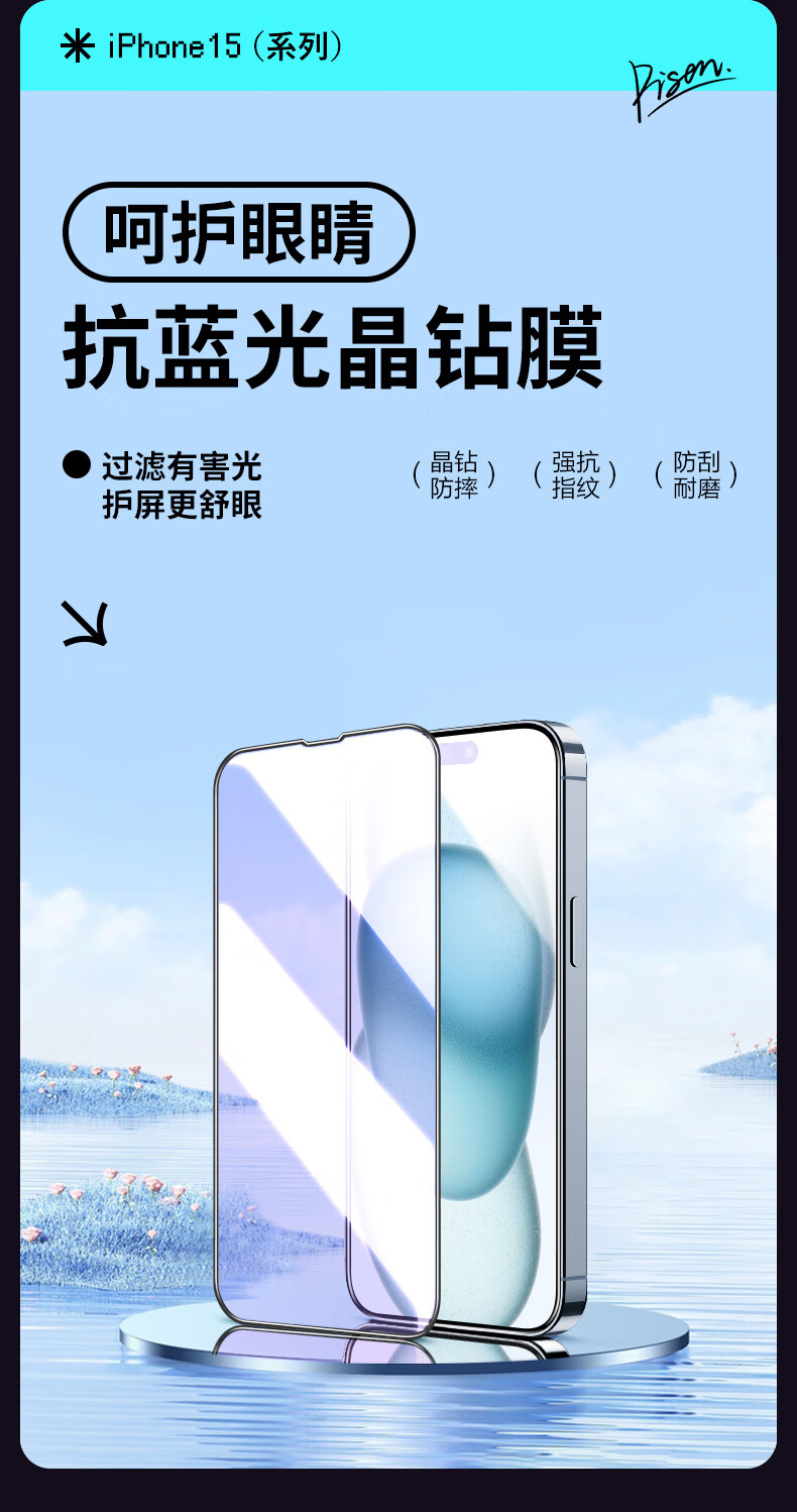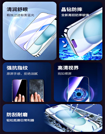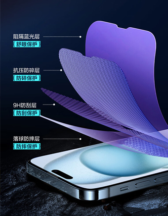 手机屏贴膜 > iPhone15系列抗蓝光舒眼膜 强抗蓝光 高清防摔
