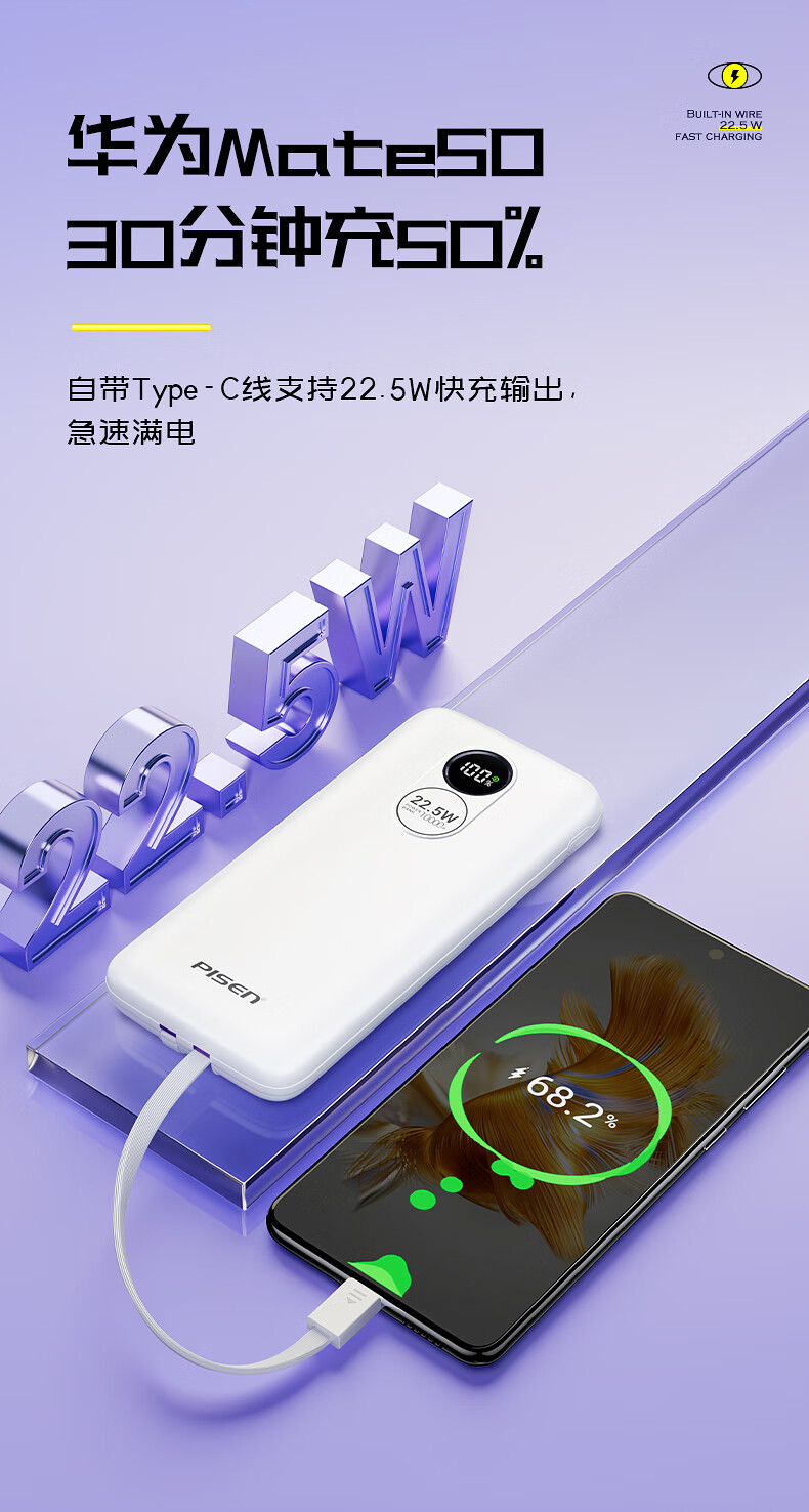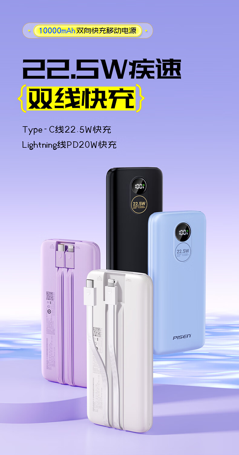 10000mAh充电宝 22.5W自带双快充线