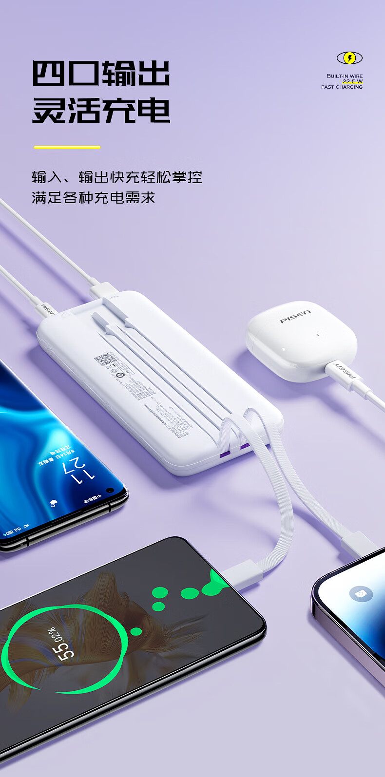 > 10000mAh充电宝 22.5W自带双快充线