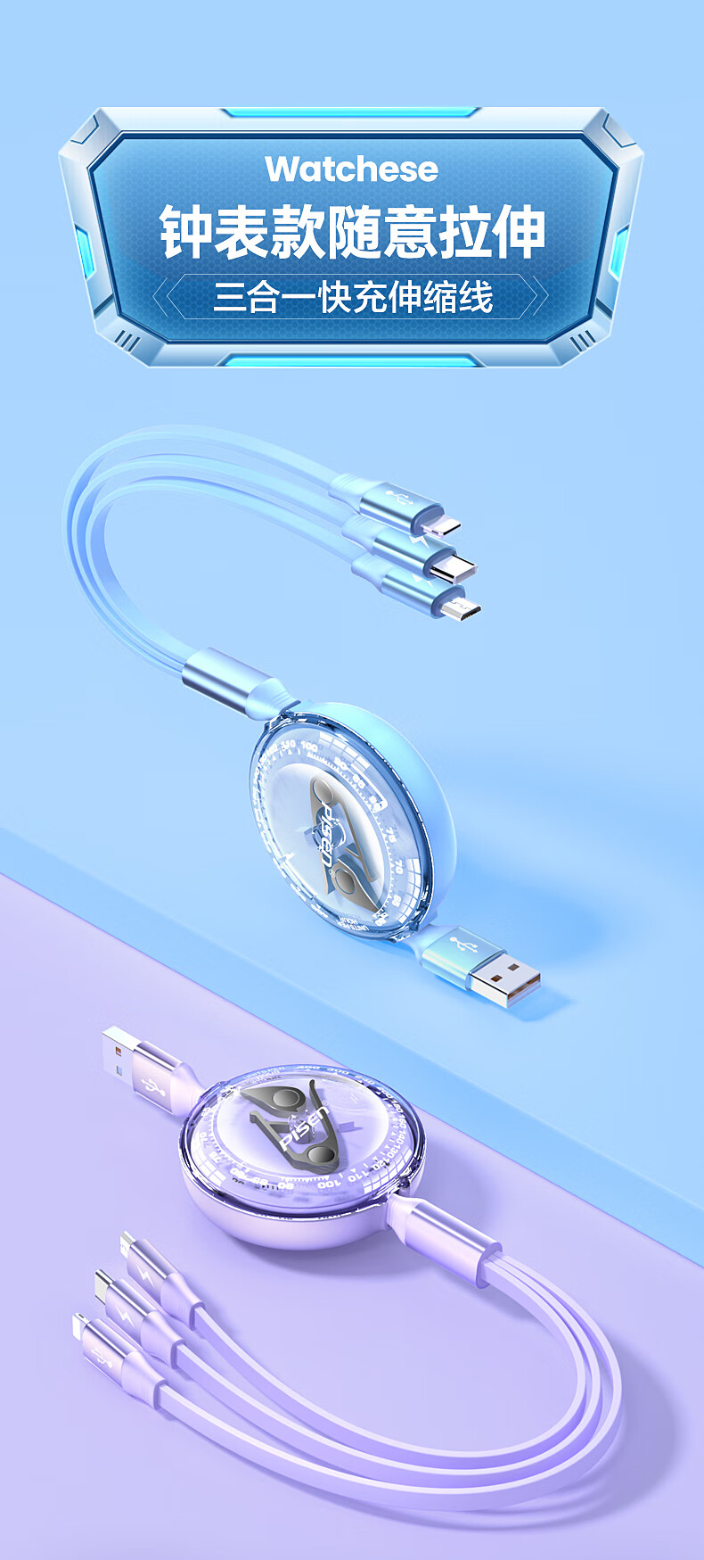 > 钟表系列三合一伸缩线 钟表外观 伸缩自如